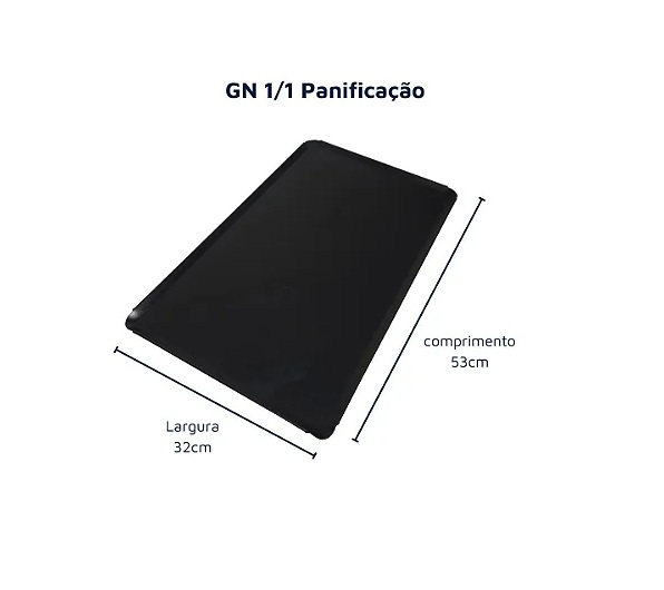 Tabuleiro liso padrão GN 1/1 para panificação em geral em fornos combinados de todos os modelos, fabricado e aço carbono esmaltado antiaderente na cor preta para trabalhar em altas temperaturas.