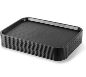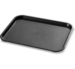Esta bandeja de plástico da Cambro para restaurante e lojas de fast food também é muito utilizada por refeitórios em geral e hotéis. Acomoda um prato de refeição, talheres, e uma lata ou copo de refrigerante ou suco, ou então até dois lanches grandes, dois acompanhamentos (batata frita, por exemplo), duas latas ou copos de refrigerante ou suco, e sachês de molhos.