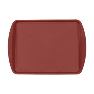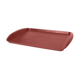 Bandeja plástica fabricada em polipropileno atóxico de alta resistência nas cores marrom, preta, bege, branco, azul, laranja, vinho, verde e vermelha.