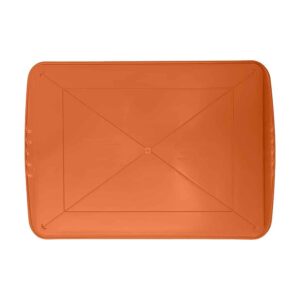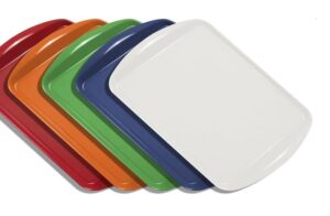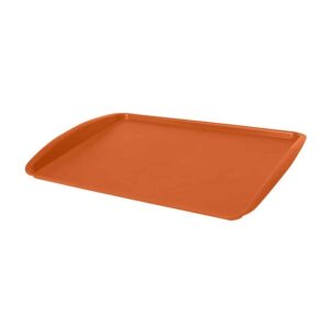 Bandeja plástica fabricada em polipropileno atóxico de alta resistência nas cores marrom, preta, bege, branco, azul, laranja, vinho, verde e vermelha.