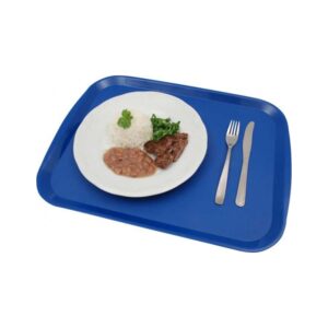 Esta bandeja de plástico para cozinhas industriais e refeitórios também é muito utilizada por restaurantes em geral e hotéis. Acomoda um prato de refeição, talheres, um prato de salada ou sobremesa, uma lata ou copo de refrigerante ou suco e uma fruta, ou então até quatro lanches grandes, quatro acompanhamentos (batata frita, por exemplo) e quatro latas ou copos de refrigerante ou suco, e sachês de molhos.