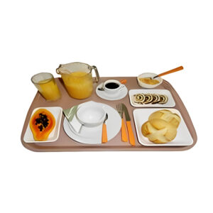 A bandeja plástica com alças para room service de hotéis e hospitais S-1100 é uma bandeja de 550×390 mm preferida para room service de hotéis, hospitais, moteis e similares, pois possui a maior área útil de todas as bandejas.