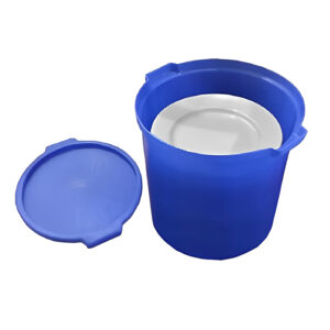 Formato cilíndrico para fácil armazenamento e movimentação. Resistente a quedas, alças laterais, tampa com encaixe para empilhamento.