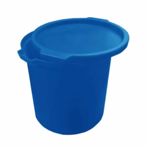 Caixa plástica cilíndrica de 30 Litros com tampa para guardar e transportar pratos, talheres, louças, utensílios e descartes de cozinhas, restaurantes e lojas de fast food.