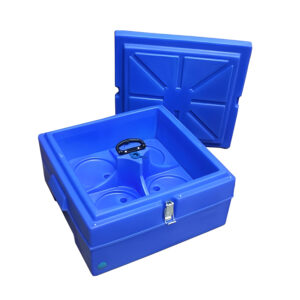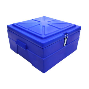 Caixa térmica Banho Maria é produzida por rotomoldagem em (PEAD) polietileno com isolamento térmico em (PU) poliuretano e com tampa ergonômica com vedação e fecho de pressão.