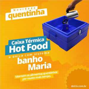 A caixa térmica Banho Maria é utilizada como caixa térmica Hot Box e bandeja térmica banho maria em restaurante, hotel, hospital e indústria de refeições coletivas para transportar Marmitex Nº8/Nº9 com alimentos preparados e refeições quentes mantendo a temperatura dos alimentos quentes até 75° C por maior tempo.