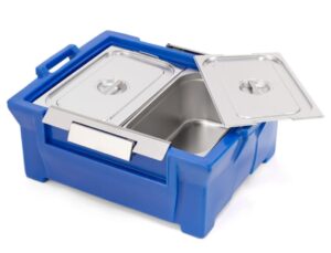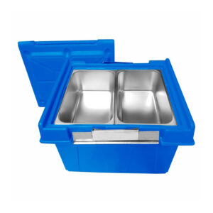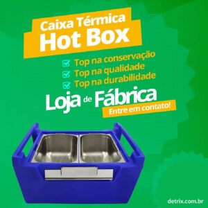 A caixa térmica Hot Box é utilizada como caixa térmica em restaurante, hotel, hospital e indústria de refeições coletivas para transportar alimentos preparados e refeições quentes e refrigeradas acondicionados em cubas gastronômica padrão GN de aço inox ou de policarbonato, mantendo a temperatura dos alimentos quentes até 75° C e dos alimentos refrigerados até 4° C.