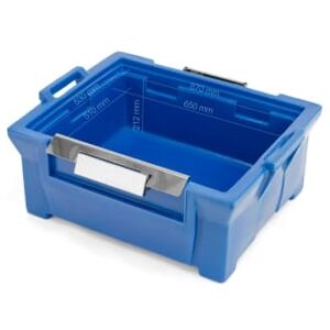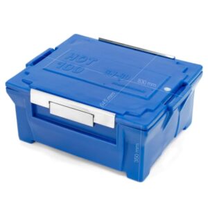 Empilha até 5 caixas térmica Hot Box de 80 Litros. Cor azul royal e outras cores sobre consulta. Em conformidade com a Norma EN-12571:1999 que especifica os requisitos de isolamento térmico, estanqueidade, resistência mecânica e durabilidade das caixas térmicas.
