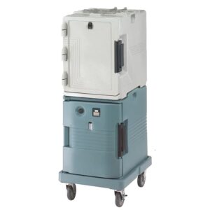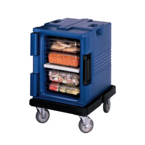 A caixa térmica Cambro UPC400 com carrinho é utilizada como caixa térmica Hot Box em restaurante, hotel, hospital e indústria de refeições coletivas para transportar alimentos preparados e refeições quentes e refrigeradas acondicionados em cubas gastronômica padrão GN de aço inox ou de policarbonato, mantendo a temperatura dos alimentos quentes até 75° C e dos alimentos refrigerados até 4° C.