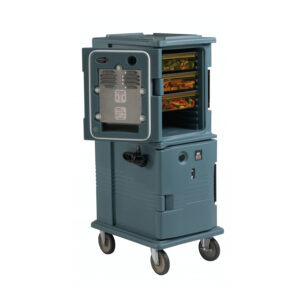 Caixa térmica Cambro UPC800 para transportar e fazer abastecimento frontal de cubas GN, mantem a temperatura dos alimentos quentes até 81,7 C° e dos alimentos refrigerados até 1,5 C° durante o transporte.
