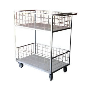 Estrutura em aço carbono com 2 cestos aramados fechados em tela 10×10. Pintura epóxi. Preço de carro abastecedor alto direto da fábrica.