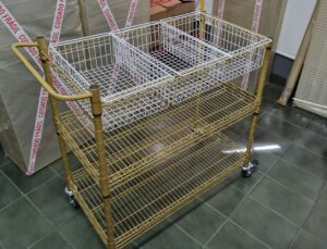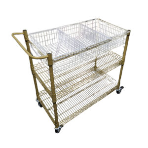 Carrinho aramado multiuso com cesto aramado, fabricado em aço tubular cromado, preto ou aluminizado de alta resistência a corrosão.