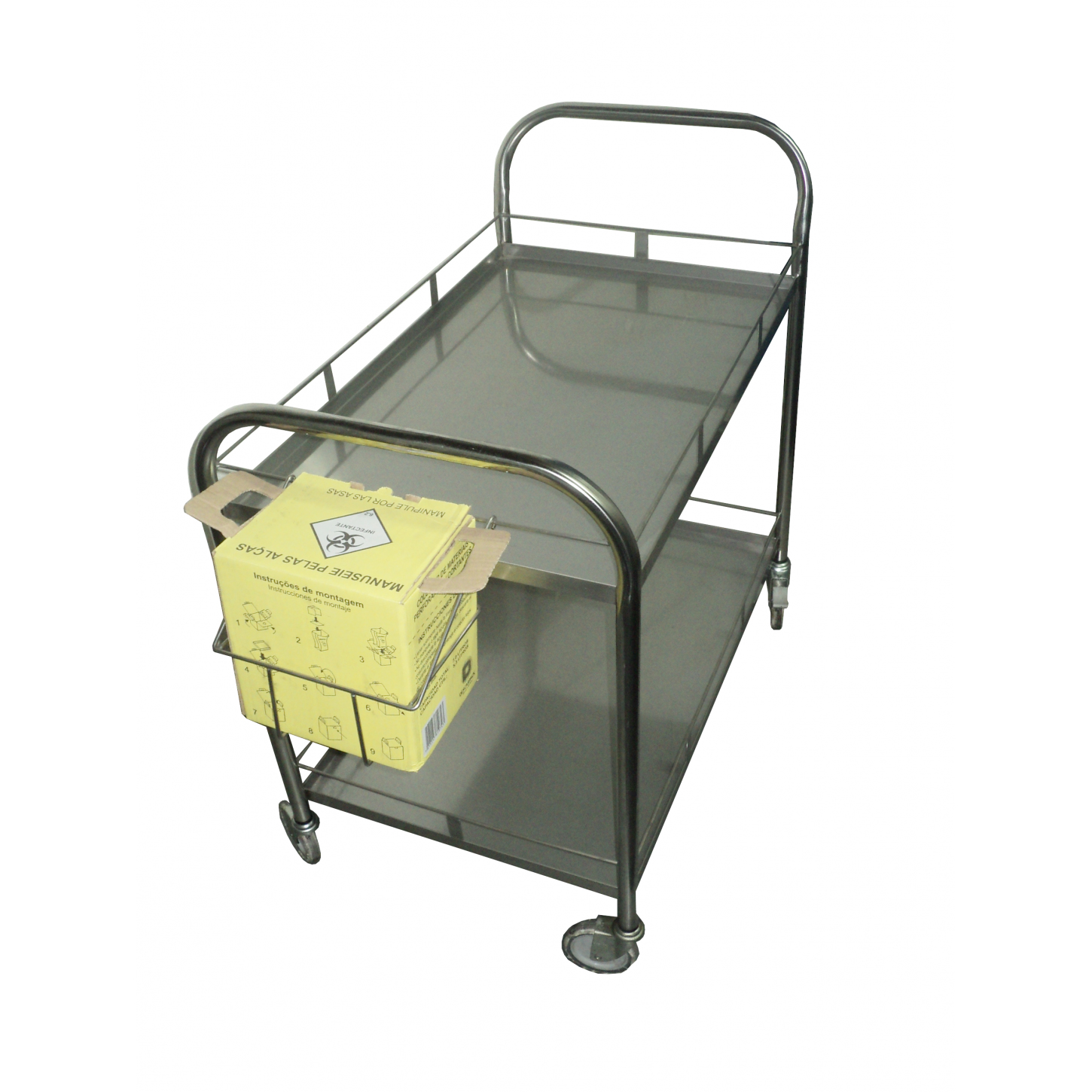 Utilizado como carrinho de transporte de alimentos, bandejas, bebidas e como carrinho hospitalar para transportar acessórios cirúrgicos em corredores e elevadores de hospitais, restaurantes e indústrias em geral.