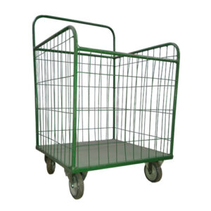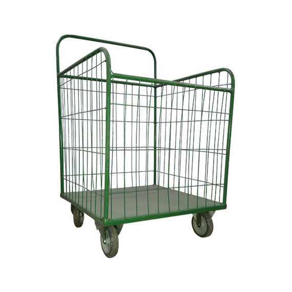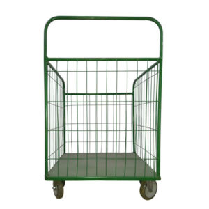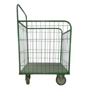 Carrinho de compras reforçado, para uso em condomínios residenciais e de indústrias, com capacidade de carga 330 kg. Fabricado em aço carbono, estrutura fechada em tela soldada, assoalho em chapa grossa, puxador tubular.