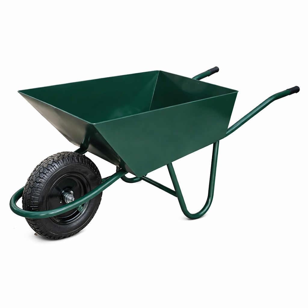 Carrinho de mão reforçado com capacidade de carga de 100 litros. Fabricado em aço carbono de alta resistência, possui caçamba em chapa grossa #16 (1,50 mm), totalmente soldada, garantindo maior vida útil mesmo em uso intenso.