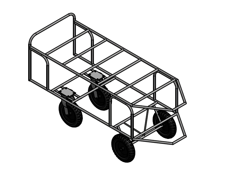 Estrutura em aço carbono tubular de alta resistência. Pintura epóxi. Rodas pneumáticas com rolamentos de rolete para fácil manobras em corredores e locomoção em pisos de cemitérios.