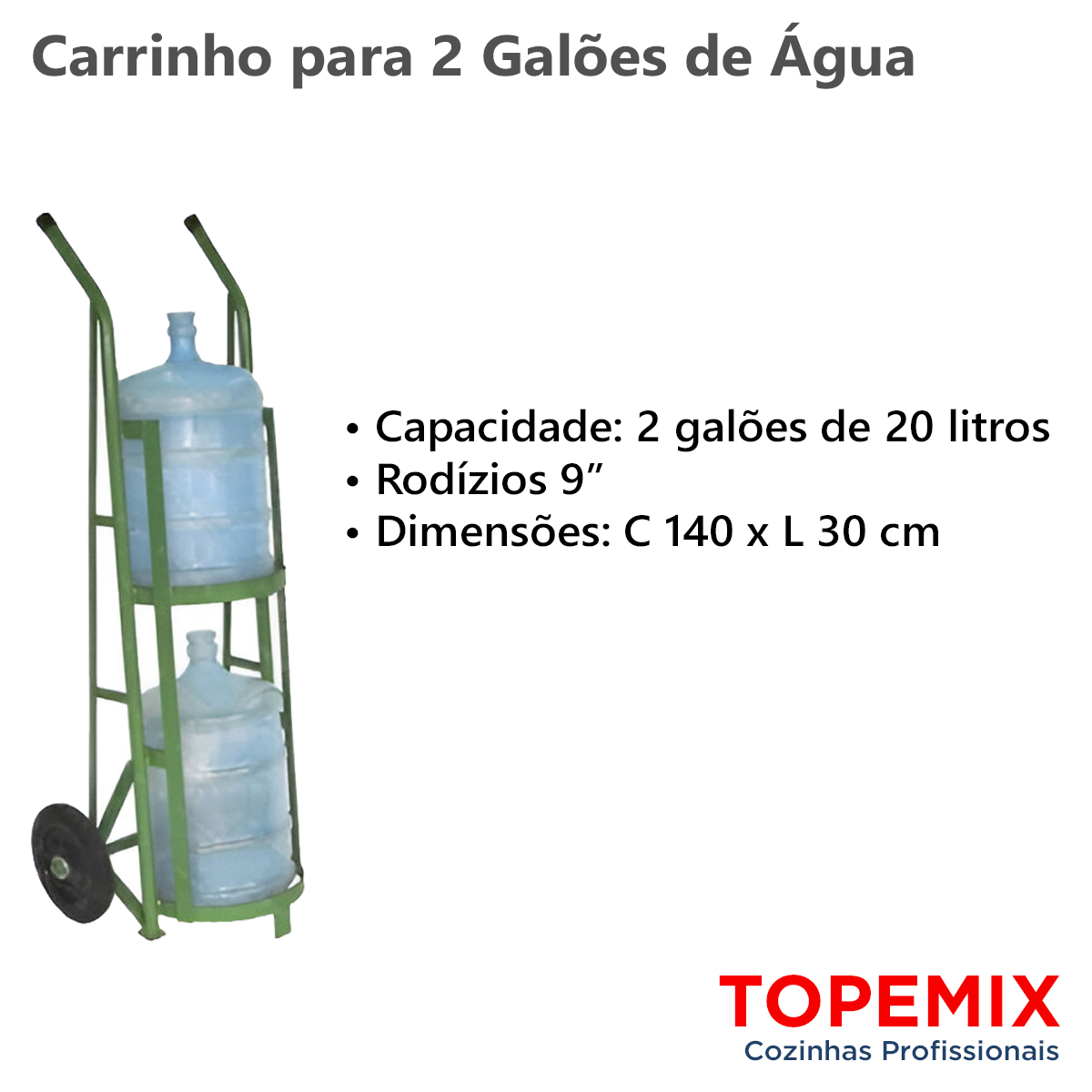 • Capacidade de carga de até 2 galões de 20 litros