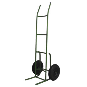 Estrutura em aço carbono tubular com 2 punhos. Pintura epóxi. Rodas com rolamentos de rolete. Transporta 4 botijões de gás de cozinha (P13). Peso 24 Kg.