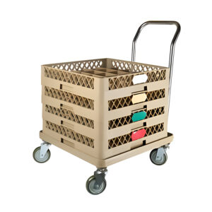 Carrinho para gaveta rack de máquinas para lavar louças industrial, produzido em polipropileno de alta resistência mecânica com 4 rodízios giratórios.