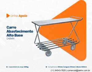 Carrinho de abastecimento alto, fabricado com assoalho elevado para fácil manuseio.