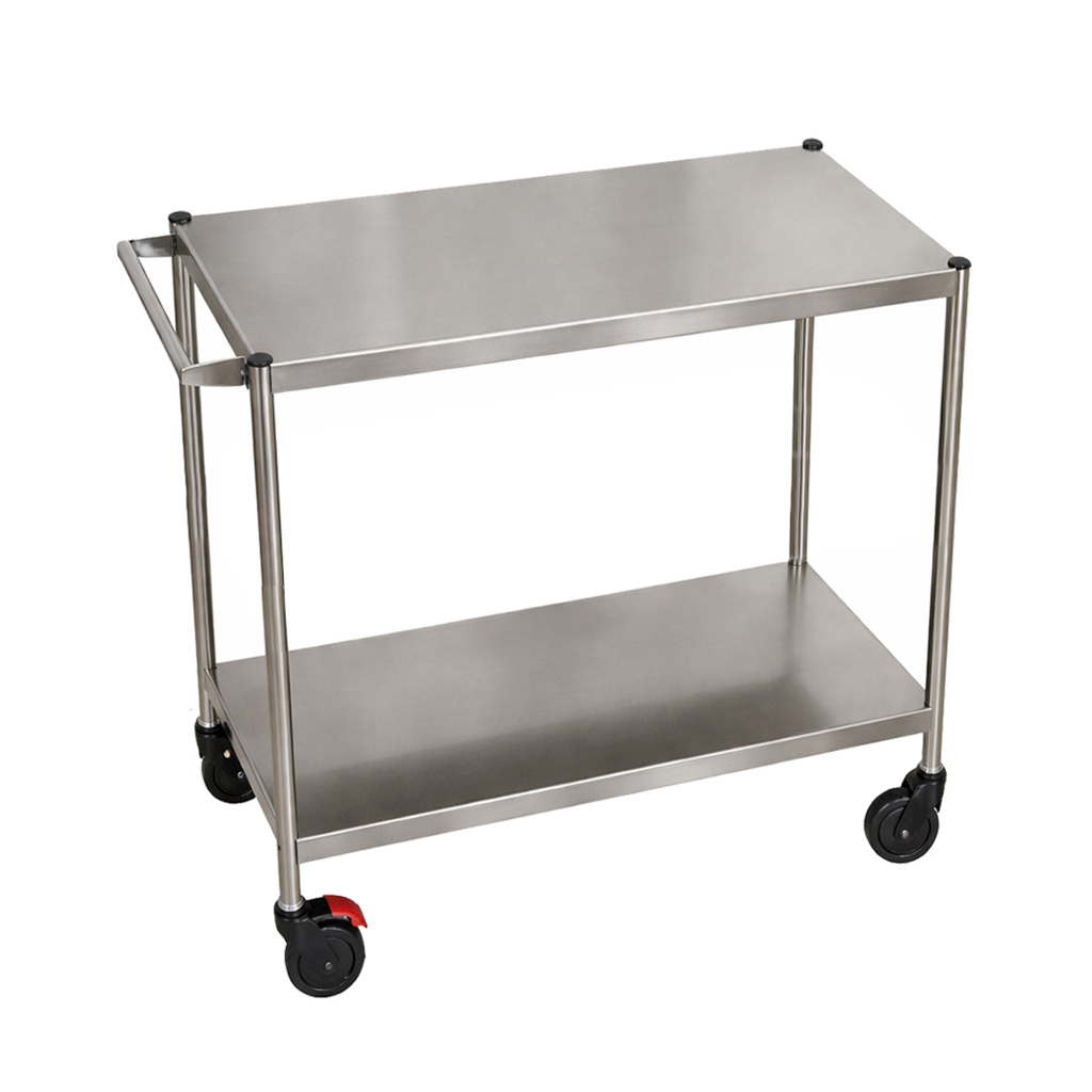 Utilizado como carro auxiliar com 2 planos para transportar e acondicionar alimentos e utensílios nas áreas de higienização, preparo, distribuição e cocção em cozinhas de restaurantes, churrascarias, hotéis, hospitais, frigoríficos.
