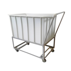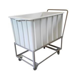 Carro caixa plástica fechada 180 Litros, fabricado em aço carbono zincado com rodas de 4” e caixa plástica de polietileno PEAD na cor branca 100% virgem. Utilizado como carro caixa e carrinho alto para caixa plástica no transporte de produtos alimentícios e a utilização das caixas em câmara frigorifica de cozinha profissional, restaurante, frigorifico, açougue, peixaria e indústrias alimentícias.