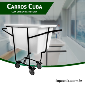 Utilizado como Carro caçamba plástica com tampa, Carrinho para hotéis, Carrinho para lavanderia, Carro coletor de resíduos hospitalares, Carro coletor para lavanderia, Carro com estrutura para hotel; Carro Cuba, Carro Cuba 180 Litros com tampa, Carro Cuba para Hospital com tampa, Carro Cuba para Indústrias, Carro para restaurantes, Carro cuba para cozinha industrial.