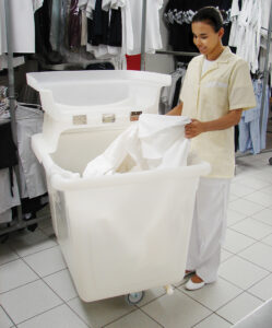 Utilizado como carrinho cuba plástica, carro caçamba plástica e container plástico, para coletar e transportar lixos, produtos alimentícios, roupas, uniformes, lençóis, toalhas e para uso geral, em condomínio, shopping, lavanderia, hospital, cozinha, hotel e indústria.