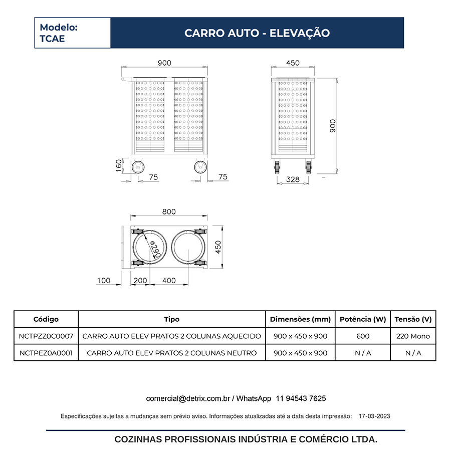Recebe pratos até Ø 300 mm. Capacidade para até 60 pratos. Preço de carro porta pratos direto da fábrica.