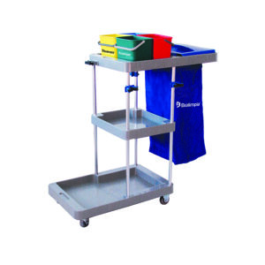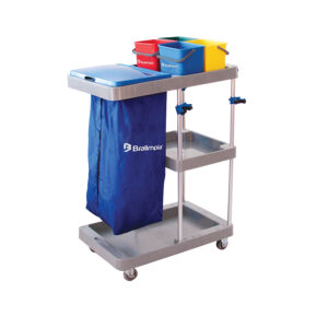 Utilizado para acondicionar acessórios e produtos para tarefas de limpeza úmida e seca de pisos e paredes em hospitais, hotéis, restaurantes, shoppings, lojas, indústrias e condomínios.