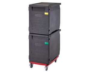 O carrinho da Cambro CD3253EPP158 é utilizado para transportar com segurança caixas térmica Cambro GoBox com alimentos e refeições preparadas em restaurante de hotel, hospital e indústria de refeições coletivas.