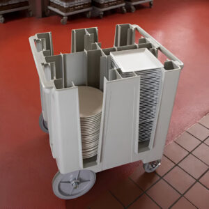 O carro para pratos Cambro DCS1125 é utilizado como carro porta pratos para armazenar e transportar pratos em cozinhas indústrias e restaurantes de hotéis, hospitais e eventos.