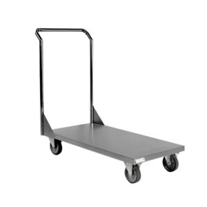 Utilizado como carro plataforma de inox para transportar mercadorias, utensílios e produtos alimentícios nas áreas úmidas e molhadas de recebimento e estocagem em cozinha profissional, restaurante, churrascaria, hotel, hospital, frigorífico e indústria.