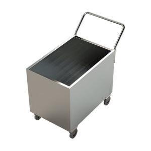 Carro tanque de aço inox para transportar carnes, líquidos, alimentos refrigerados e congelados e para higienização de utensílios, fabricado em aço inox com puxador tubular Ø 1” e dreno com válvula de esfera para escoamento de líquidos.