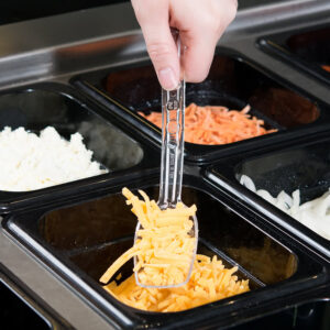 Utilizada como colher de policarbonato para servir e dosar, doces, alimentos e produtos em geral em restaurantes, confeitarias, buffet e redes de fast food.