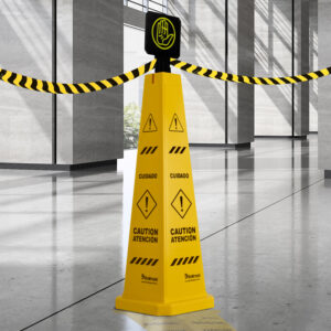 Utilizado como cone de sinalização em condomínio, indústria, hotel, hospital, restaurante, banco, shoppings e locais públicos para sinalizar e interditar áreas na prevenção de acidentes e pode ser utilizado em conjunto com corrente plástica demarcadora para organizar filas e demarcar e isolar ambientes.