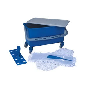 Conjunto composto por Balde de polipropileno 25 Litros. Tela para decantação de sujidades retirada do piso. Tampa hermética que mantém a cera utilizável por 2 dias. Refil aplicador 100% microfibra de 400 mm. Cabo de alumínio Ø 22 mm x 1,4 m de comprimento. 4 rodízios em PVC.