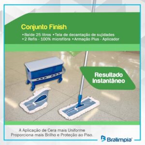 Conjunto Finish Bralimpia para aplicação de ceras ou resinas em diversos tipos de pisos de maneira uniforme e econômica.