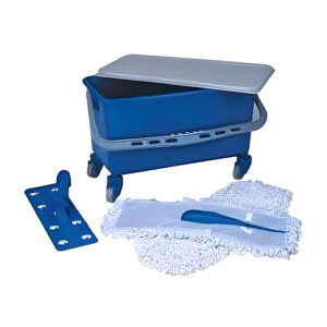 Conjunto composto por Balde de polipropileno 25 Litros, tela para decantação de sujidades retirada do piso, tampa hermética que mantém a cera utilizável por 2 dias, refil aplicador 100% microfibra de 400 mm, cabo de alumínio Ø 22 mm x 1,4 m de comprimento, 4 rodízios em PVC.