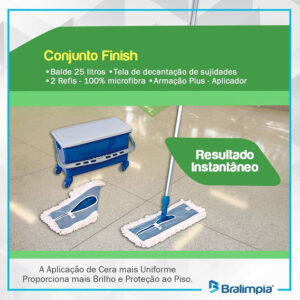 Conjunto Finish Bralimpia para aplicação de ceras ou resinas em diversos tipos de pisos de maneira uniforme e econômica.