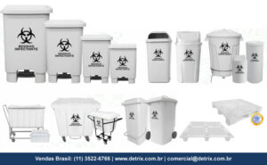 Utilizado como container de lixo hospitalar, lixeira para hospitais e contentor de resíduos hospitalar, para e transportar resíduos das áreas de saúde, hospitais, centros de zoonoses e clínicas.