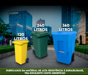 Utilizado como carrinho coletor de lixos, carrinho de gari e lixeira de coleta seletiva, para armazenar e transportar lixos e resíduos, em indústrias, ruas, condomínios, hospitais, shoppings, restaurantes, cozinhas e hotéis.