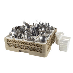 Utilizado na base do rack para lavagem de talheres, como copo para lavagem talheres em geral, facas, garfos, colheres, conchas e espumadeiras em cozinhas de restaurantes, hotéis, bares, hospitais e industrias.