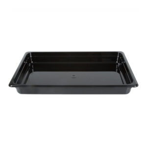 Cuba de policarbonato padrão GN1/1 Cambro Camwear, fabricada em policarbonato na cor preta, resistente a manchas, odores e arranhões, praticamente inquebrável e suporta (-40º a 99ºC).