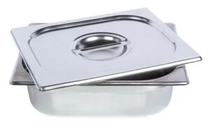 Opcionais cubas GN com alças laterais e com tampa de aço inox com pegador.