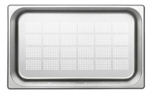 Utiliza como cuba GN perfurada na preparação de legumes, saladas e carnes em geral para não reter líquidos nos alimentos e em forno combinado na cocção de alimentos na função vapor. Além disso, as cubas gastronômicas perfuradas são utilizadas para escorrer alimentos dentro dos carros esqueletos no setor de higienização de restaurantes e cozinhas profissionais, otimizando a organização e o fluxo operacional.