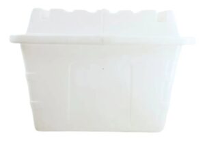 Cubas plásticas com capacidade para 180 Litros até 1200 Litros sem tampa, produzida em polietileno com aditivo anti-UV contra variações climáticas sol, chuva e poluição na cor branca, para armazenar e transportar de forma segura alimentos e resíduos sólidos e líquidos.