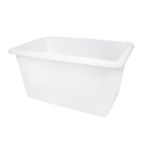 Cuba plástica com capacidade para 180 Litros sem tampa, produzida em polietileno com aditivo anti-UV contra variações climáticas sol, chuva e poluição na cor branca, para armazenar e transportar de forma segura alimentos e resíduos sólidos e líquidos.
