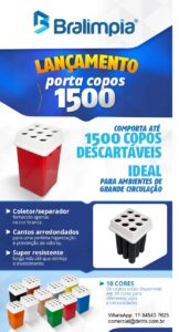 Dispensador de copos descartáveis Bralimpia, produzido em polietileno com 9 cavidades para 1500 copos grandes de até 300 ml.