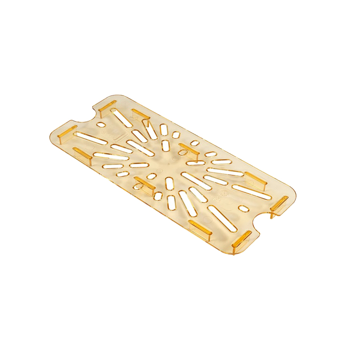 Dreno escorredor para cuba GN1/3 de policarbonato da Cambro 10HPD150 e Carlisle , fabricado em policarbonato na cor Âmbar, resistente a manchas, odores e arranhões, praticamente inquebrável e suporta temperaturas elevadas (-40º a 190ºC).